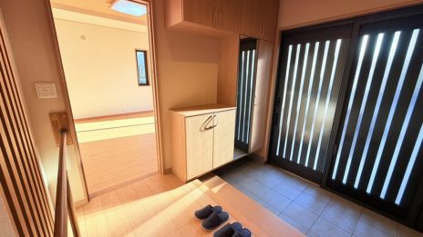 玄関土間とホールが広く、落ち着いていて家族が同時に出入りしても窮屈にならない。